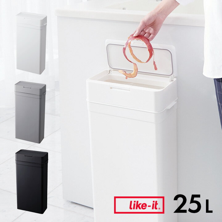 レビュー特典! ライクイット like-it 《 seals シールズ 25 密閉ダストボックス 》 ホワイト グレー シンプル キッチン おむつ 生ごみ 臭わない 蓋付き ふた付き フタ 四角 角型 おしゃれ スリム 小さい 薄型 縦型 低い袋 見えない ワンタッチ ゴミ袋