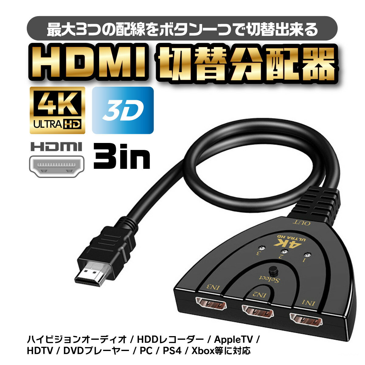 【半額クーポン配布中★11月27日1:59迄】HDMI 分配器 切替器 セレクター 切り替え ディスプレイ 複数 3入力 1出力 メス→オス アダプター HDMIスイッチャー