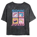 アニメキャラクター レディース トップス Tシャツ クロップド グラフィック Licensed Character Juniors' Sonic Thedgehog Sushi Made Fresh Served Fast Poster Cropped Graphic Tee Black ブラック