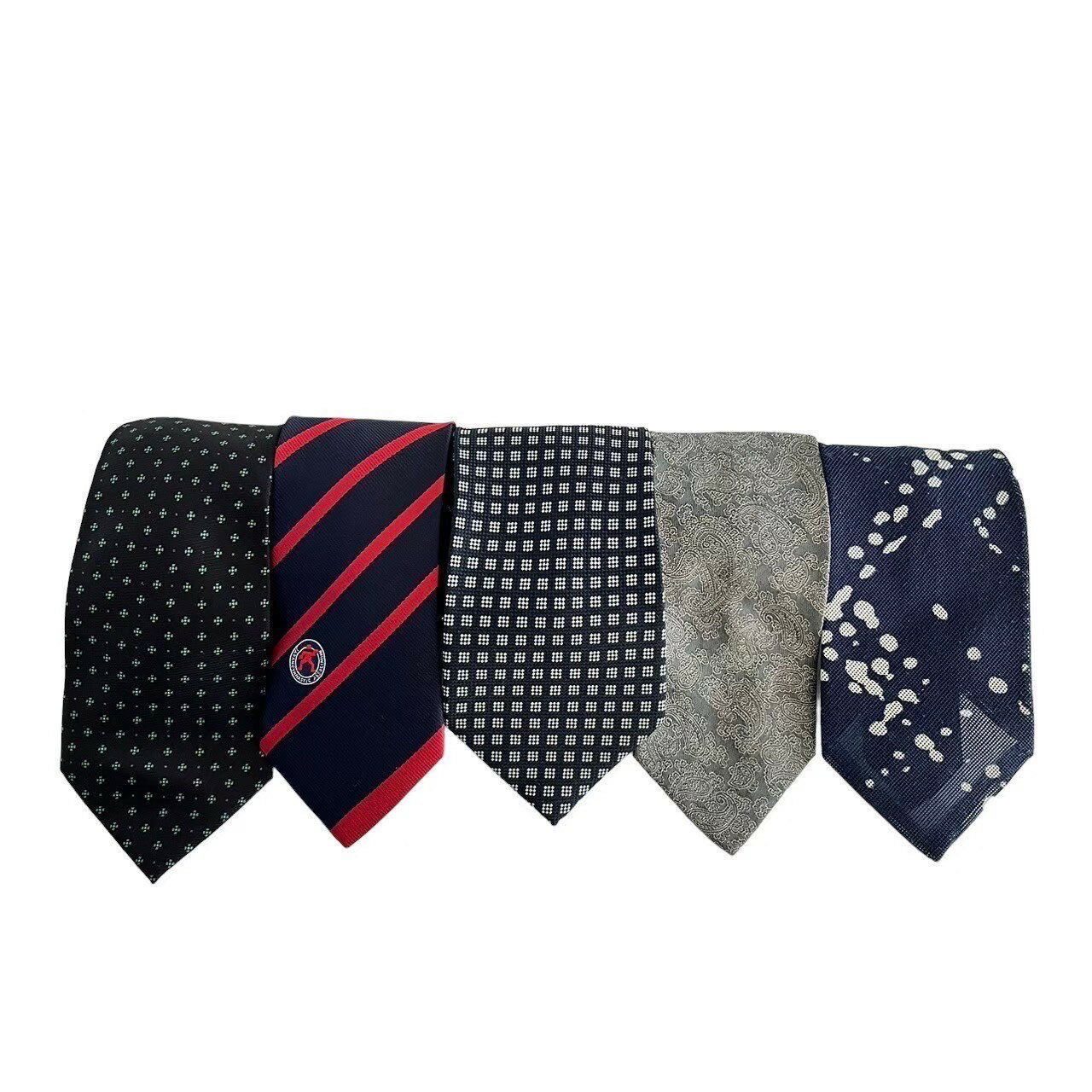 [中古]ネクタイ WASHABLE seter ie texital AMSCO 5点 まとめ セット ネイビー 紺 グレー 灰 絹 ポリエステル チェック ストライプ ペイズリー柄 小紋柄 総柄 スーツ ファッション 小物 メンズ
