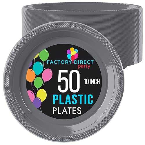 Exquisite Silver Plastic Plates For Party 10" Silver Disposable Plates For Party Supplies 50 Pcs Disposable Dinner Plate Heavy Duty 350 GSM Plate Sets, Plastic Dinnerware Sets