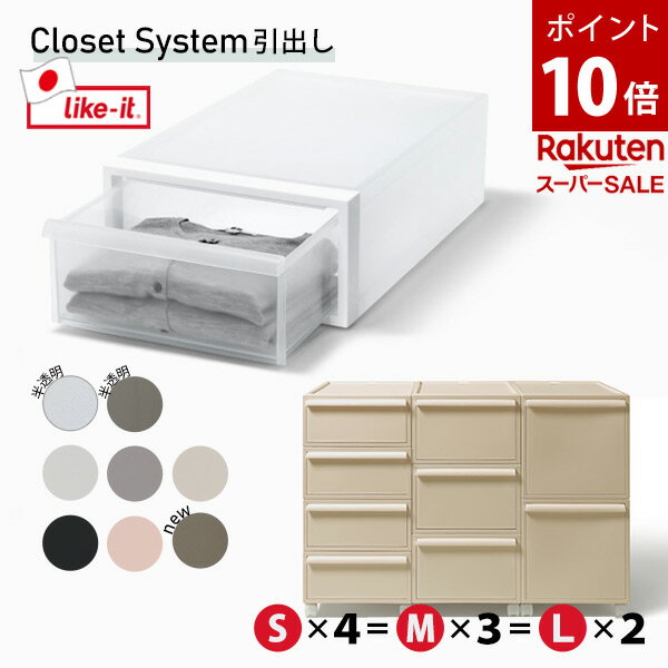 【スーパーSALE限定_ポイント10倍】収納ケース[クローゼットシステム 引出し S M L ワイドM] 日本製 積み重ねOK 浮き防止・引出し抜け落ち防止機能 プラスチック CS-D1 CS-D2 CS-D3 CS-WD2 ホワイト ブラック ベージュ グレー ピンク モカ [ライクイット] 【フラリア】