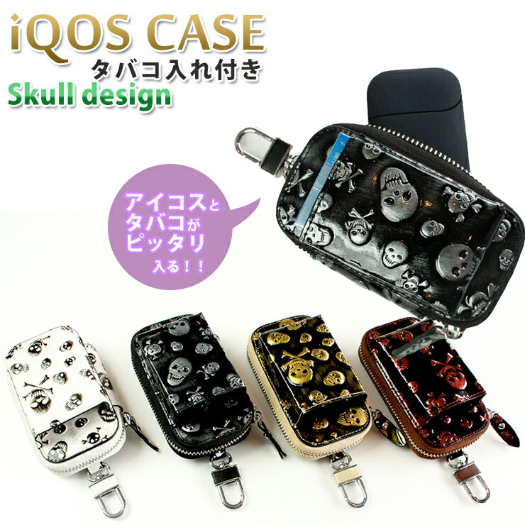 アイコスケース タバコ入れ付き スカルシリーズ (全4色) iQOS3 Duo対応 iQOSケース カラビナ付き 電子タバコ入れ 電子たばこ入れ アイコスカバー 加熱式タバコ入れ ヒートスティック型タバコ 加熱型タバコ 父の日 アイコス3 新型アイコス