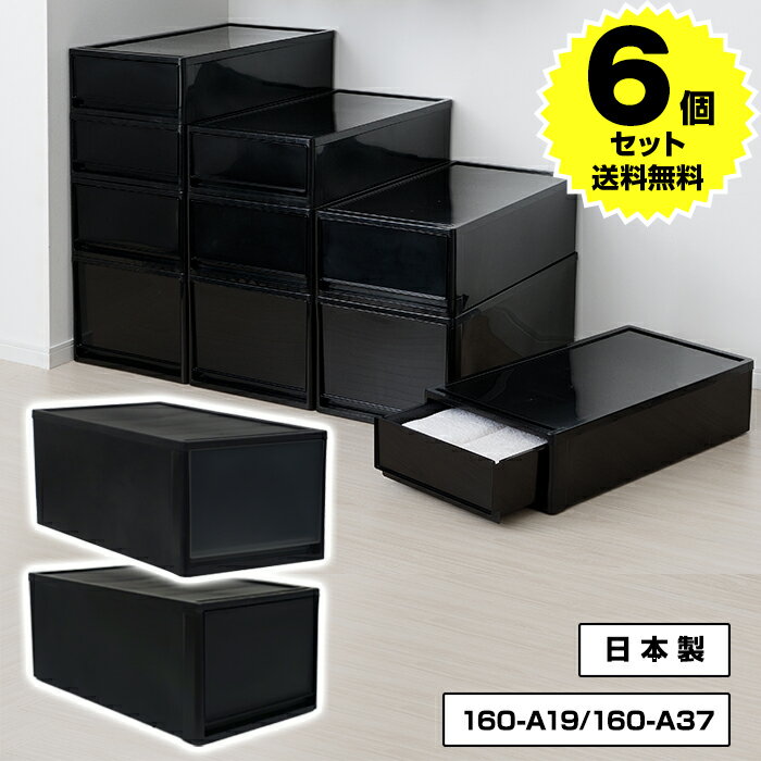 【6個セット特価】収納ケース 衣装ケース 引き出し 1段 押入れ 奥行74cm 高さ30cm L 黒 ブラック【160-A19】積み重ね 収納ボックス おしゃれ プラスチック 押入れ収納 衣類収納 クローゼット収納 日本製【送料無料】