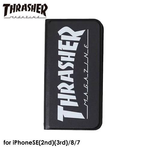 【あす楽、土日、祝日発送】【送料無料】THRASHER HOME TOWN Logo PU Leather Book Type Case BLK/WHT【iPhone SE(第2世代)(第3世代)/8/7対応】スラッシャー アイフォンケース iphoneケース スマホケース ストリート ベーシック MAG