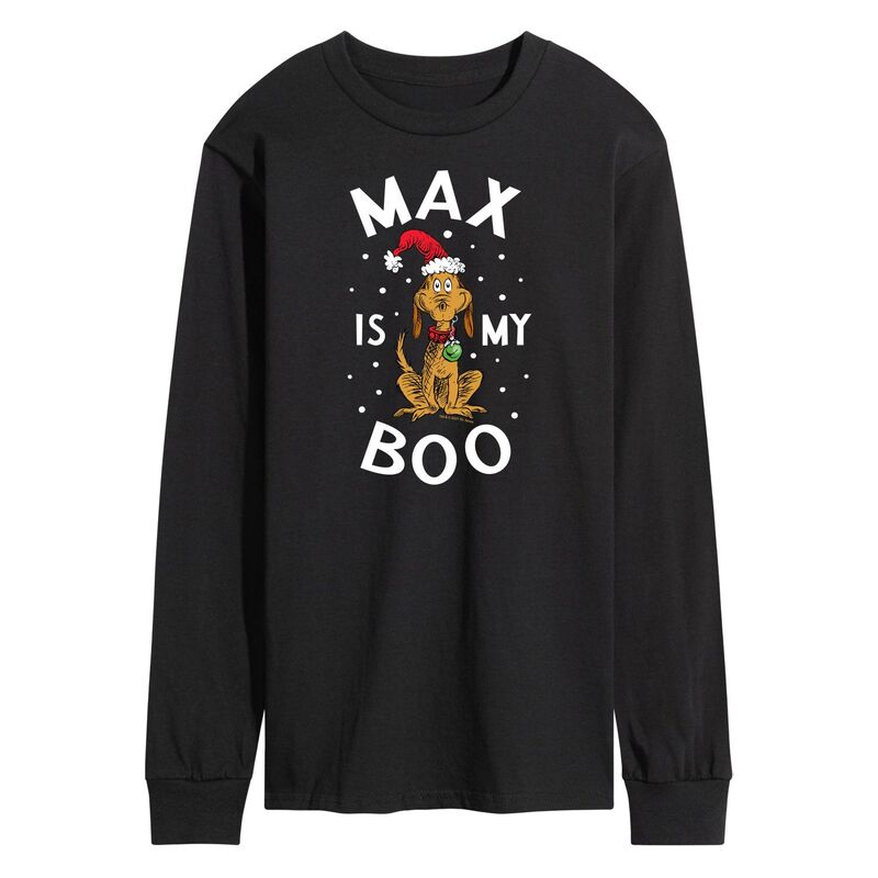 【送料無料】 ライセンス キャラクター メンズ Tシャツ トップス Men's Dr. Seuss Grinch Max Is My Boo Long Sleeve Tee Black