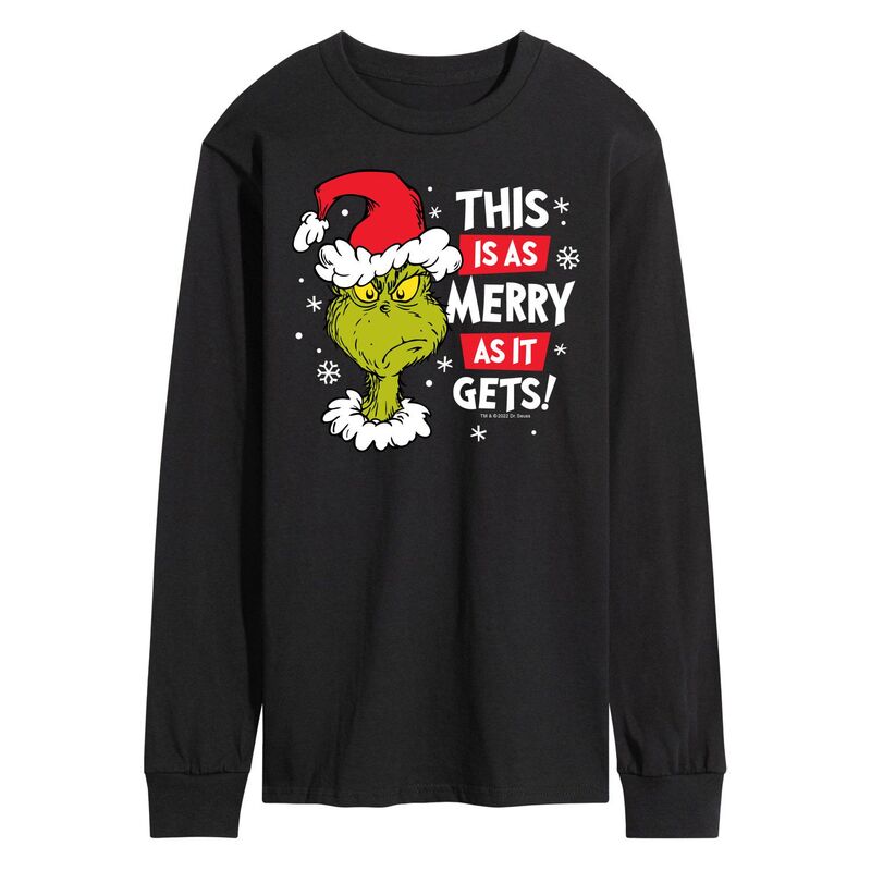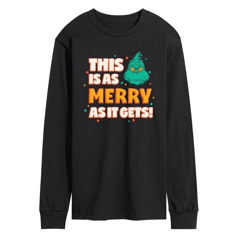 【送料無料】 ライセンス キャラクター メンズ Tシャツ トップス Men's Dr. Seuss Grinch This Is As Merry As It Gets Long Sleeve Tee Black