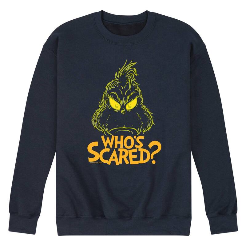 【送料無料】 ライセンス キャラクター メンズ Tシャツ トップス Men's Dr. Seuss Grinch Who's Scared Fleece Sweatshirt Navy