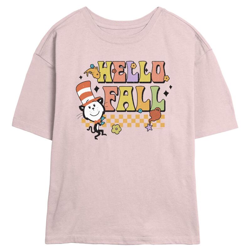 【送料無料】 ライセンス キャラクター レディース Tシャツ トップス Juniors' Dr. Seuss The Cat In The Hat Hello Fall Skimmer Graphic Tee Blush