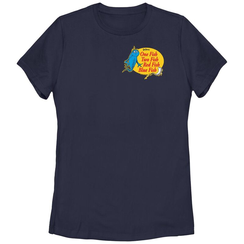【送料無料】 ライセンス キャラクター レディース Tシャツ トップス Juniors' Dr. Seuss One Fish Two Fish Red Fish Blue Fish Graphic Tee Navy