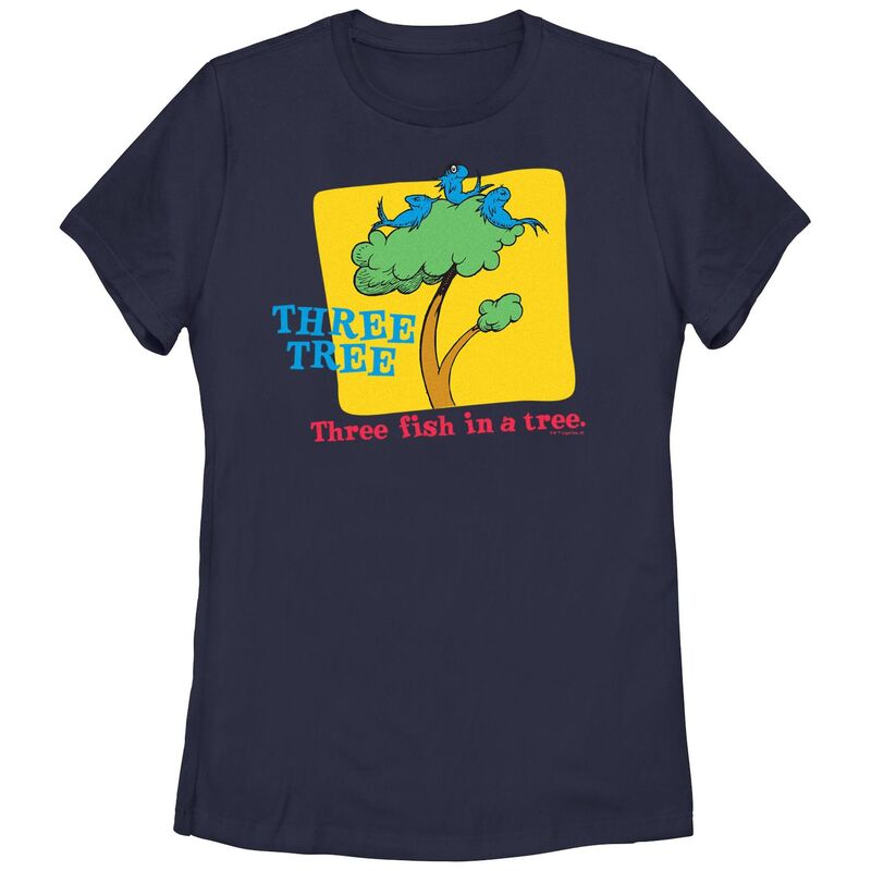 【送料無料】 ライセンス キャラクター レディース Tシャツ トップス Juniors' Dr. Seuss Three Tree Three Fish In A Tree Graphic Tee Navy