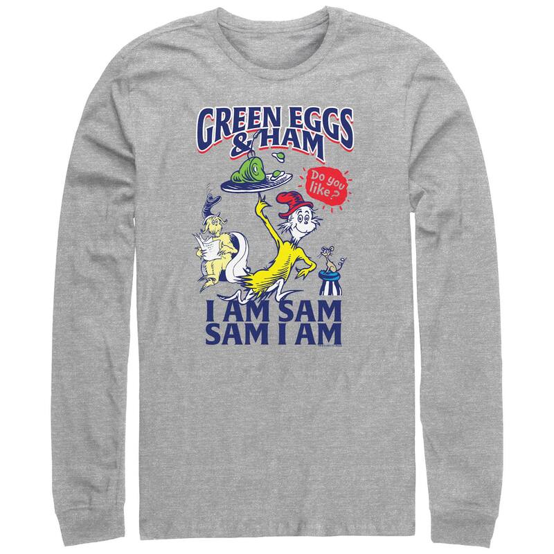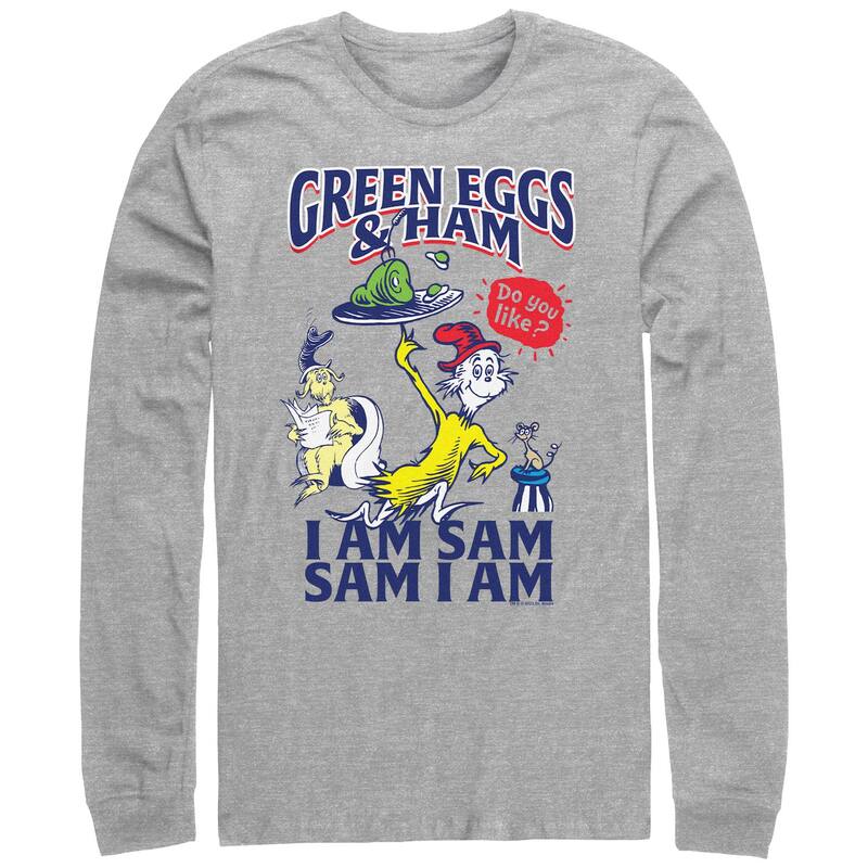 【送料無料】 ライセンス キャラクター メンズ Tシャツ トップス Men's Dr. Seuss Green Eggs And Ham Do you Like Them Long Sleeve Graphic Tee Athletic Heather