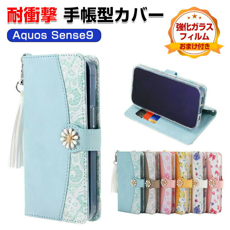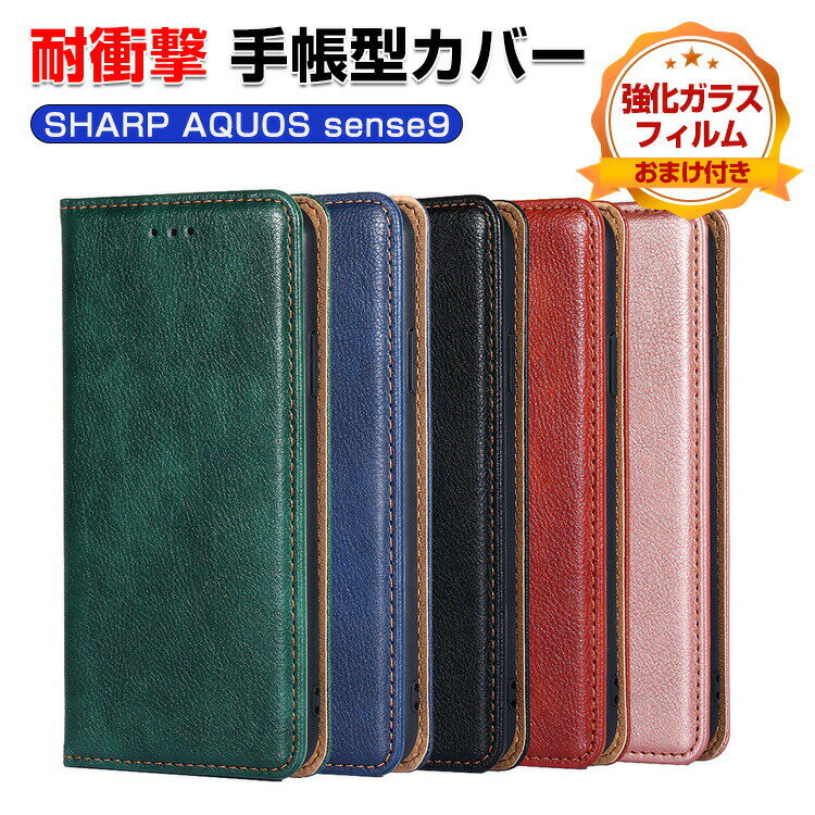 SHARP AQUOS sense9 ケース 耐衝撃 カバー 手帳型 財布型 TPU&PUレザー おしゃれ 汚れ防止 スタンド機能 実用 カード収納 カッコいい 人気 便利性の高い スマホ シャープ アクオス センス9 手帳型カバー CASE 強化ガラスフィルム おまけ付き