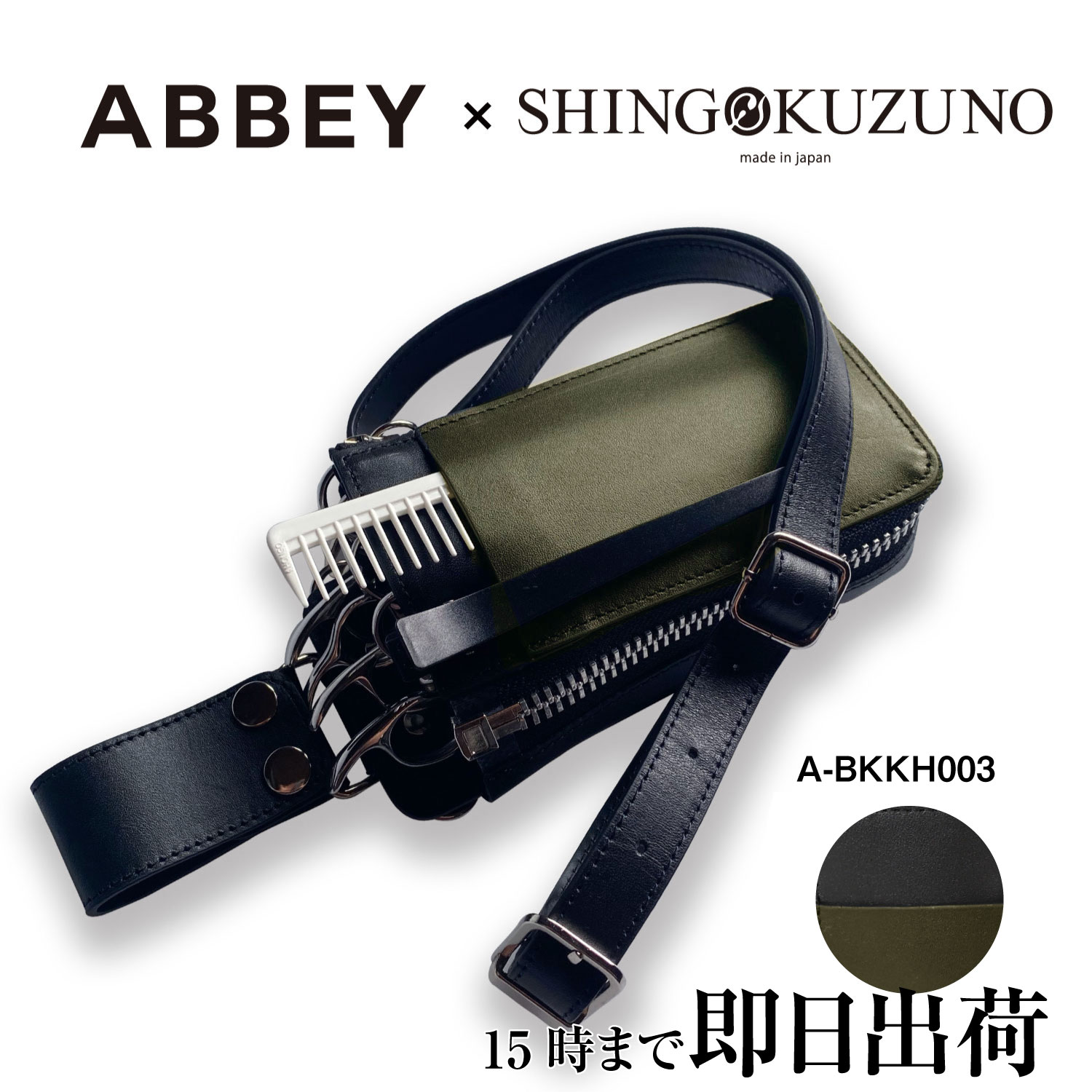 【アウトレットセール 10%OFF】ABBEY × SHINGO KUZUNO オリジナル コラボ ケース ブラック×カーキ A-BKKH003 ロゴ刻印あり 松永英樹 / 国内シザーケース専門メーカー 職人手作り/ 美容師 理容師 トリマー フローリスト シザーケース シザーバッグ アビー