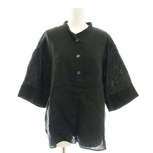 【中古】マーガレットハウエル MARGARET HOWELL 25SS SHIRTING LINEN プルオーバーシャツ 五分袖 バンドカラー 2 黒 ブラック /AT ■OS レディース 【ベクトル 古着】 250915