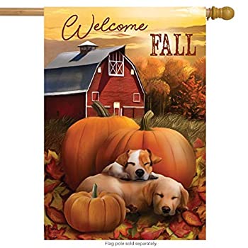 【中古】【輸入品・未使用】Briarwood Lane Welcome Fall Puppies House Flag Autumn Pumpkin Farm 28" x 40" [並行輸入品]