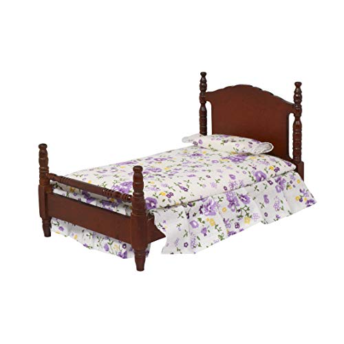 【中古】【未使用・未開封品】Dark Brown Dollhouse Bed - Dolls House Furniture Queen Bed - Toy Miniature in 1/12 scale