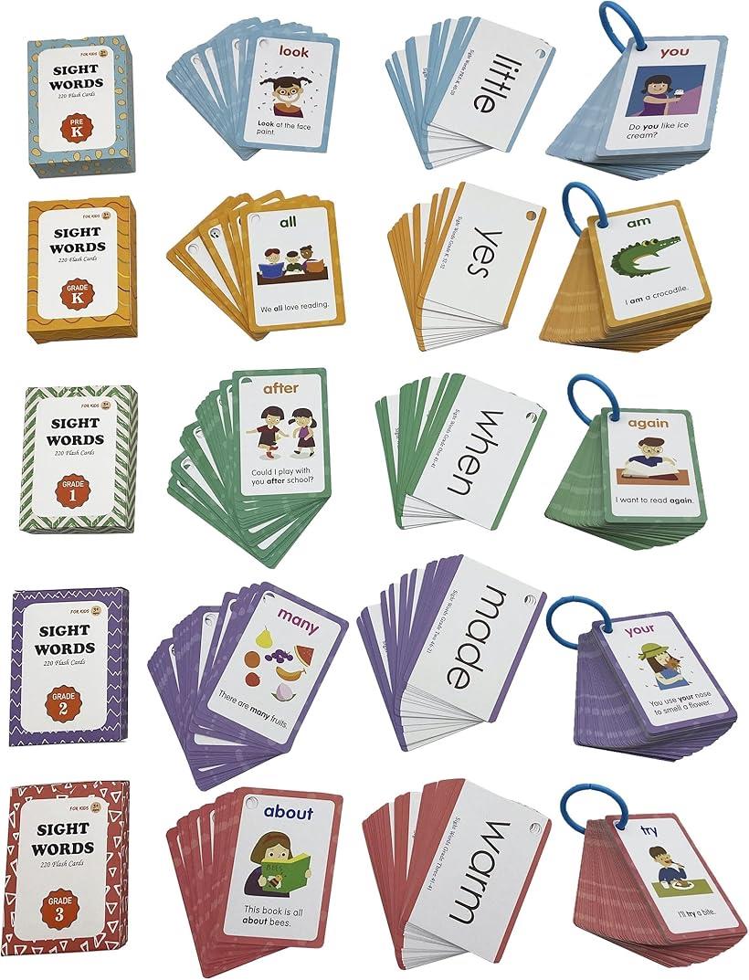 フラッシュカード 220枚 サイトワード sight word 英単語 英語フラッシュカード 幼児 プリスクール 小学生 モンテッソーリ 幼児教育 幼児英語 (横6.2 x 縦8.8 cm)