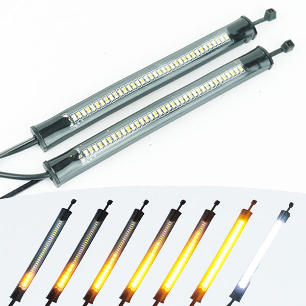 商品説明商品名LEDシーケンシャルラバーウインカー 10cmロングソフトラバー製商品番号NL008商品コメント汎用のLEDウインカーです。点灯部分は10cmほどの長さです。LEDチップを36個使用し明るさ、省電力、耐久性全て申し分ありません。ソフトラバー製でタイラップ付きですのでフロントフォークなど曲面にも取り付け可能です。もちろん防水です。あまりウインカーを目立たせたくない方や取り付け場所に悩んでいる方に大変お勧めです!デイライト機能も付いておりますので、被視認性もアップします。黒=マイナス線赤=デイライト線黄=ウインカー線2個セットでの販売となります。ウインカーとデイライトは同時に発光しません。ウインカー点滅時はデイライトは消灯します。対応電圧12V カラーブラック付属品貼り付け用両面テープ付き タイラップサイズ幅約13mm 全長約130mm 高さ約8mm配線長約45cm タイラップ有効長約200mm適合車種12V車用 汎用品注意事項汎用品ですので取り付けには工夫が必要になる場合がございます。LEDウインカーとなりますので正常に動作させるには車種にあったICウインカーリレーや抵抗が必要になります。ICウインカーリレー等は取り扱いがございませんので購入者様でご用意ください。両面テープで貼り付けますので、必ず貼り付け面をきれいにして落下しないよう確実に貼り付けてください。取扱説明書は付属しておりません。