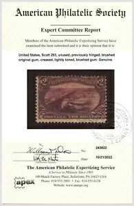 米国スコット #293 ミシシッピ川以西博覧会切手。ミントOGH。APS認定。CV $1900