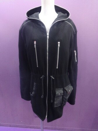 ■ランク:B ■色:黒Xシルバー ■サイズ:着丈約72cm 肩幅約43cm バスト約102cm ウエスト約94cm ※多少サイズが前後する場合がございます。 ゆとりをみてお買い求め頂くことをお勧めいたします。 ■品質表示:本体A ポリエステル100% 本体B アクリル70% 毛30% ※全体に少々毛羽立ちがあります。