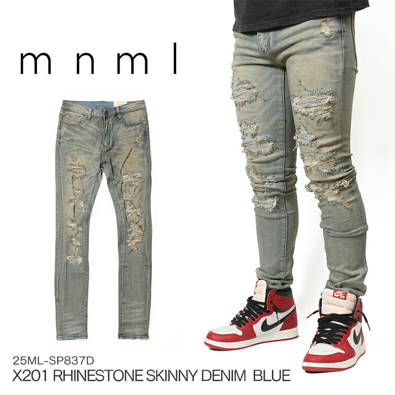 mnml ミニマル X201 RHINESTONE SKINNY DENIM BLUE スキニー デニムパンツ ストレッチ スキニーデニム スキニージーンズ ジーンズ メンズ ブルー インポート ブランド ストリート ファッション
