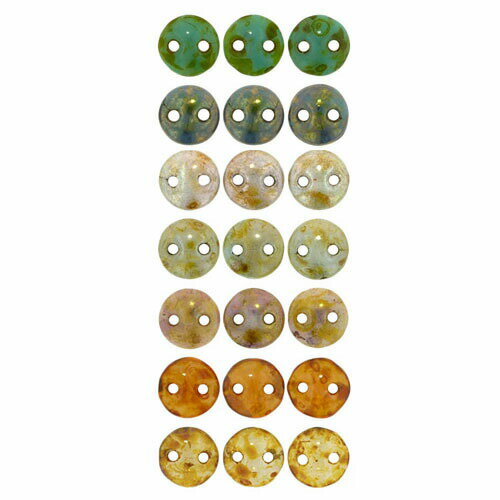 サイズ 外径:約6mm 入り数 40個入り 商品説明 チェコメイトの2ホールビーズです。 スキ・セイロン系。 ※画像の色は実物と多少異なる場合があります。 また製造過程において、同じ品番でも色の濃淡が生じてしまうことがあります。 一部割れ欠け等のあるもの、穴の開いていないものが入っている場合があります。 予めご了承ください。