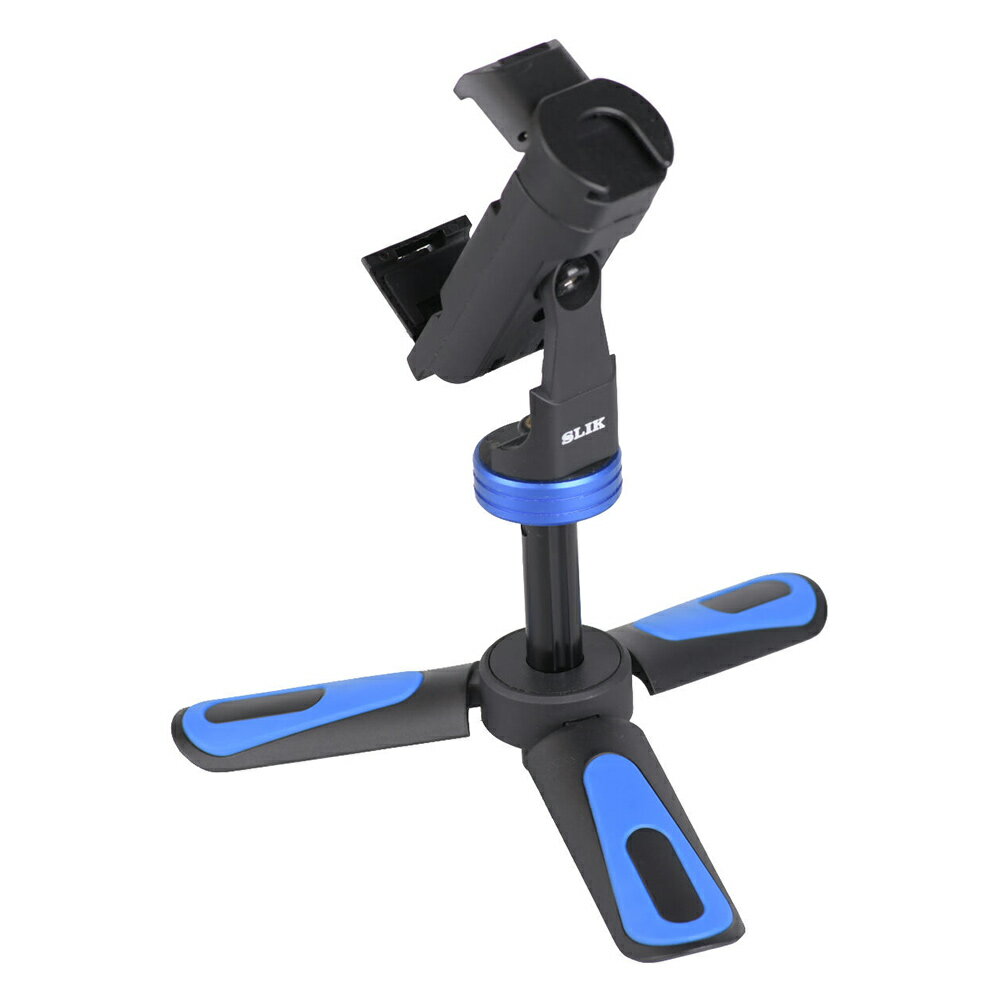 スリック スマホ三脚 スタンド GX-S 6400 SLIK 軽量 DIN規格 クイックシュー ブラック ブルー 黒 青 ツートン おしゃれ スマホ撮影 スマートフォン 一眼レフカメラ ビデオカメラ 取付 コンパクト 雲台 スマホアダプター 星景写真