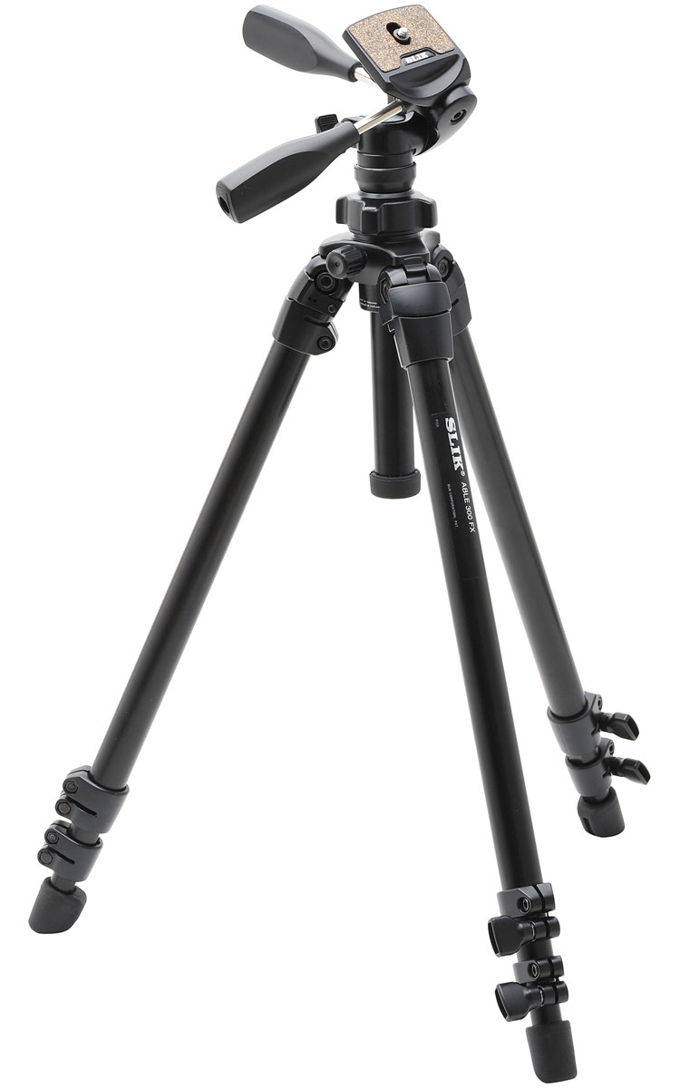 [耐加重4kg]SLIK PROシリーズ エイブル300FX雲台付きプロ小型アルミ3段三脚 ノブロック式のAMT(アルミ・マグネシウム・チタン合金)パイプを採用した小型プロ仕様三脚!シンプルな装備で軽量化を実現したベーシックモデル三脚【smtb-TK】