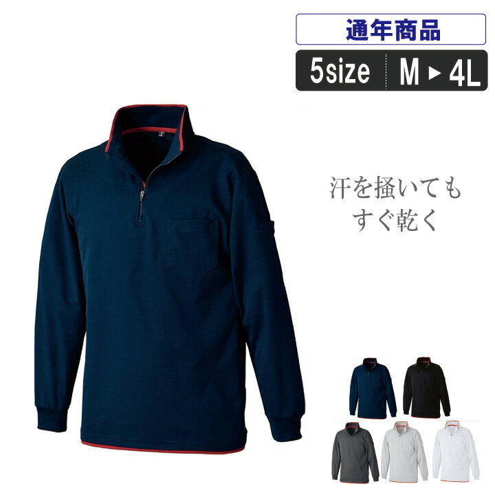 作業服 作業着 吸汗速乾性を備えた裏生地綿100%素材。SM:34025 裏綿長袖ハーフジップアップシャツ【SMT】