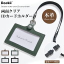 本革 カードホルダー idカードホルダー 両面 クリア 2枚 軽い 安全パーツ ネックストラップ idカードケース カード ポケット 窓 首掛け 軽量 ネーム 高級 社員証 ケース 定期入れ 名刺 id パス ホルダー 横型 メンズ レディース