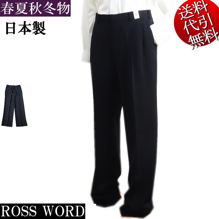 日本製 オールシーズン春夏秋冬物【ビッグ有】ROSS WORD/ロスワード【送料無料】無地 シャツ滑止 シンプル ビジネス 冠婚葬祭 衣装 ツータックパンツ スラックス 黒 70/73/76/79/82/85/88/91/94/97/100/105/110【smtb-k】【ky】父の日【YDKG-k】メンズ【ky】【RCP】25189