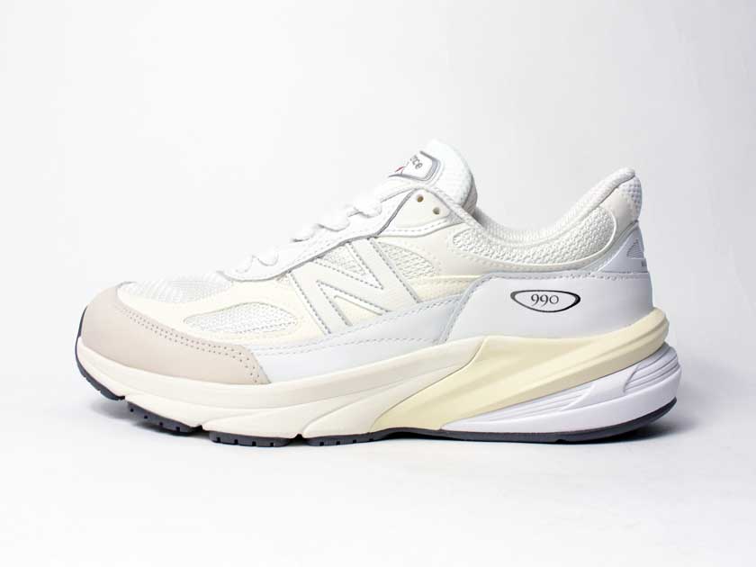 Country Made in USA Season2025 Materialアッパー:天然皮革/合成繊維、ソール:ラバー ColorWhite with Sea Salt SizeWidth(ウィズ、足幅):D Accessory(付属品)箱、スペアシューレース Attention ※PC環境などにより写真と実物のお色が異なる事があります。■DETAIL 1982年、ニューバランス自ら『1000点満点中、990点の性能』のランニングシューズと言わしめ、開発に成功した《990》 その後990シリーズはその時代の最高技術を搭載してバージョンアップされる、いわばニューバランスの”顔”的な代表モデルとして君臨しています。 その誕生から40周年となる2022年、ニューバランスが仕掛ける《Made in USAコレクション》が始動。 ニューヨークはクイーンズ発のアパレルブランド、《Aime Leon Dore/エメ レオン ドレ》の創設者である『Teddy Santis/テディ・サンティス』をクリエイティブディレクターに迎え、アパレルラインと名作《990》の歴代V1、V2、V3のファーストコレクションを2022年4月に世界同時ローンチしました。 テディ・サンティスが目指す《Made in USAコレクション》は歴史あるニューバランスのアーカイブから数々の ”レガシー・遺産” を見つけピックアップし、ここ数年アメリカでムーブメントが起きている国内生産、「メイド・イン・アメリカ」のクラフトマンシップを使って再構築する事。 ”本物”に拘るニューヨークっ子気質のテディならでは、次世代のヴィンテージの様なプロダクトに仕上がっています。 1994年まで使われていた「14本バーのフライングNBロゴ」はテディ・サンティスによる《Made in USAコレクション》でのみ使用されるシグネチャーロゴとして復刻されています。 2025年限定カラーとしてドロップされた『U990GB6』がJUST IN! ホワイト、クリーム、ベージュのグラデーションを異素材の表革とメッシュで表現した爽やかなモデル。 ありがちなオールホワイトではない、一味違った《テディ サンティス》のホワイトカラー。 季節を問わずどんなスタイルにも合わせやすい、”雑味”のある一足に仕上がっています。 今回のV6では従来の990シリーズに使われていた足の甲を横断するミッドフットサドルが無くなり、メッシュの上からシンセティックレザーのオーバーレイがつま先から踵まで繋がります。 またニューバランスが開発した素材の中で今、最も高い反発弾性を備えるミッドソール素材、「FuelCell / フューエルセル」を使用。 手に持つと、まずとにかく「軽さ」に驚きます。 また、新テクノロジーのフューエルセルは抜群の履き心地で「これで走ったらどうなるんだろう」と思ってしまう程です。 全体的なフォルムは、V4からV5へはよりシャープな印象に変化していった990。 今回のV6では逆にV2、V3時代の丸みのあるシルエットに近いものを感じます。 国内正規価格42,900円(税込)から8,000円OFFのスペシャルプライス!在庫限りとなりますのでお早めにどうぞ!