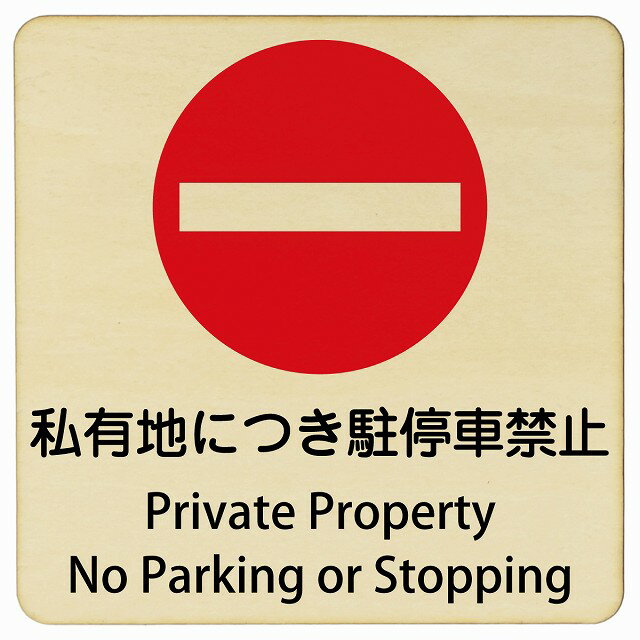 私有地につき駐停車禁止 Private Property - No Parking or Stopping 9x9cm 14x14cm 27x27cm 正方形 インバウンド 多言語 英語 外国語 英語表記 木製プレート 安全対策 迷惑行為 案内 看板 注意 警告