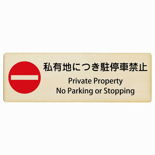 私有地につき駐停車禁止 Private Property - No Parking or Stopping 12x4cm 18x6cm 27x9cm 長方形 インバウンド 多言語 英語 外国語 英語表記 木製プレート 安全対策 迷惑行為 案内 看板 注意 警告