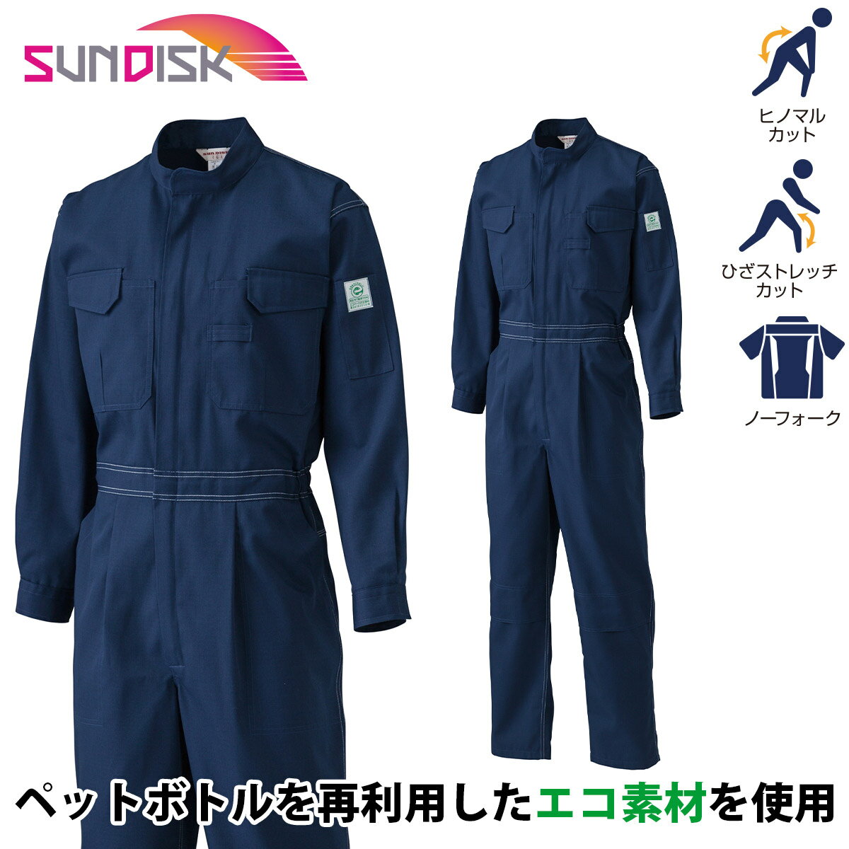 SUNDISK 605 つなぎ服 続服 日の丸繊維 ペットボトル再利用エコ素材 JIS T8118 エコマーク認定 ツナギ服 生地厚手 オールシーズン対応 ツヅキ服 メンズ 男女兼用