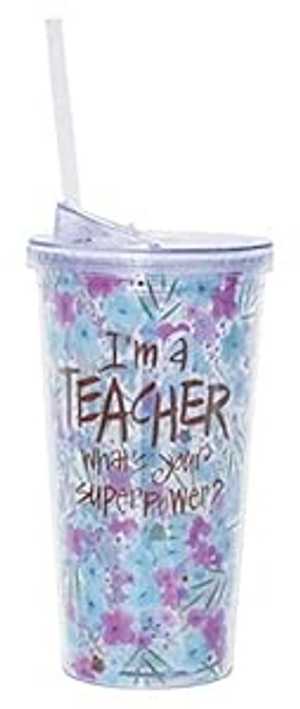 Burton & Burton 9730789 ティーチャー スーパーパワー アクリル トラベル カップ、高さ 7 3/4 インチ x 幅 3 1/4 インチ 20 オンス、ホワイト burton+BURTON Burton & Burton 9730789 Teacher Superpower Acrylic Travel Cup, 7 3/4" H