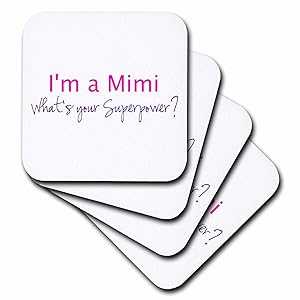 3dRose CST_193745_2 I'm a Mimi What's Your Superpower Hot Pink Funny Gift for Grandma Soft Coasters, Set of 8