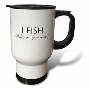3dRose tm_184943_1 I Fish What's Your Superpower Funny Fishing Love Gift for Fisherman トラベルマグ、14オンス、ホワイト 3dRose tm_184943_1 I Fish What's Your Superpower Funny Fishing Love Gift for Fisherman Travel Mug, 14