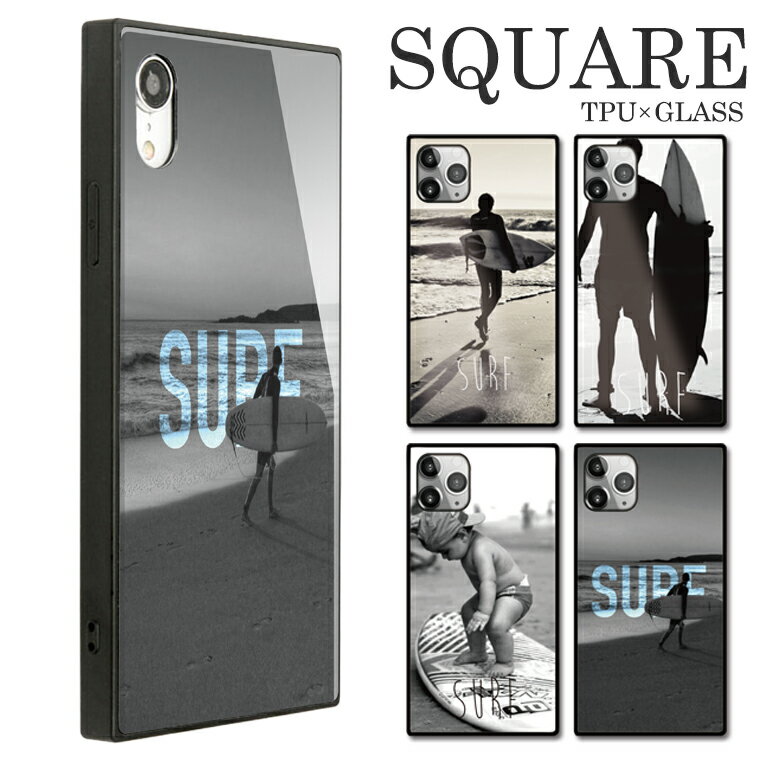 iPhone16 16e 16Pro 16ProMax 16Plus ケース iPhone 15 pro max ケース iPhone14 13pro 12 ケース 背面ガラス スクエア 四角 強化ガラス 軽量 おしゃれSURF SURFRIDER サーフ サーフィン アロハ ALOHA ハワイ 海 波乗り デザイン おしゃれ