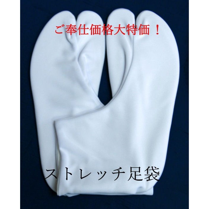 ※ ゆうパケットなら1個まで。 ストレッチ足袋 3L 5枚こはぜ ナイロン生地使用 【メール便OK】 ■サイズ 【3Lサイズ】 26.0〜26.5cm ■素材 表地 : ナイロン 100% 甲裏地: 綿 100% 底地 :ポリエステル 100% ■カラー 白 ナイロン生地を使用したストレッチ足袋です。 ナイロン生地を使用し、弾力性・伸縮性抜群に優れ、足にピッタリととても履きやすい足袋で、型崩れせず、綺麗な足元を演出します。 又、ご家庭でお洗濯が出来、乾きも早くアイロン不要です。 お仕事や日本舞踊・華道・普段着物等々、毎日使用される方や使用頻度の高いお客様へのご奉仕価格にて販売させて頂きます。 ナイロン足袋は、洗濯が簡単で、洗った時に乾きが早く、アイロンも不要ですので、旅行用に大変便利です。 【はき方のコツ】 足にぴったり合ったものを、指先からきっちりと足を包むようにはきます。 1:まず、足袋を半分ほど折り返します。 2:足袋を引っ張り、足指を先端まで入れます。 3:足首部分を引き上げ、足をしっかり収めます。 4:つま先を少し上げ、底面と脚が90度くらいになるよう足首を曲げ、こはぜを下から上へ掛けます。 これで、簡単に美しくはけます。 【足袋の洗濯方法】 洗濯は、汚れの軽いうちに洗剤をとかしたぬるま湯にしばらく浸し、軽く揉みほぐすと簡単にとれます。 特に汚れが目立つ部分は、ブラシで軽く洗い、すすぎを十分にして下さい。 ※洗剤が残っていますと黄ばむので、すすぎはしっかりして下さい。 すすぎ終わったら軽く絞り、下記の[足袋の伸ばし方]を参考の上、形を整え底地をよく伸ばし、手で叩いてシワを伸ばし、掛け糸(掛け糸とはこはぜを掛ける為に縫い付けてある糸です)のところに洗濯バサミを止め、陰干しします。 [足袋の伸ばし方] ・底地を左右に引き伸ばす。 ・指先・踝を持ち、底地を上下に引き伸ばす。 ・指先から甲の部分、縫い目を揃え引き伸ばす。 ・足首廻りを引き伸ばす。 ・手で叩き底地・表地のシワを伸ばす。 《注意》 他の色物との洗濯は避けてください。 洗濯機を使用する場合は、弱回転で約5分間洗って下さい。(洗濯ネットのご使用をお奨めします。) 塩素系漂白剤をご使用になる場合は、取扱い上の注意をよく読んで過度の使用は避けて下さい。(特に使用後のすすぎは充分にして下さい。)