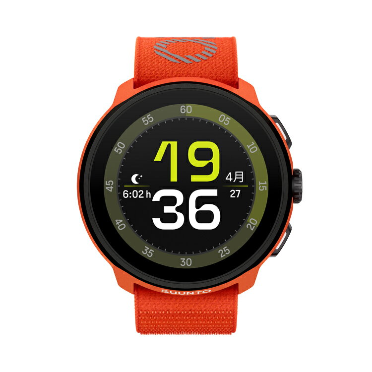 ・ランナーのために設計された軽量スポーツウォッチ わずか36gで終日快適・正確なペースと距離を測定するデュアルバンドGPS・最大12日間のバッテリー寿命、トレーニング時は20時間・インターバルトレーニングやゴーストランナーなどのラン特化ツール【トレーニング】最大20時間(パフォーマンスモード/最高のGPS精度であるデュアルバンド使用時)最大40時間(省電力モード)【日常使用】最大12日間Suunto Runはトレーニング負荷を追跡し、エクササイズ後の心拍数を監視して、トレーニングストレススコア(TSS)を測定することで、ランニングのレベルを上げるために重要なインサイトを提供します。正確な位置情報追跡でナビゲーションのストレスから解放されるため、手首から簡単にルートに従うことができます。Suuntoアプリで詳細を確認しながら、パフォーマンスを把握できます。Suunto Runは24時間365日アクティブなライフサイクルをサポートします。毎日の歩数とカロリーを監視したり、天気予報と電話の通知で最新の情報を調べたり、最適な回復を得るための睡眠を追跡したりできます。さらに、音楽をコントロールしたり、アラームを管理したり、呼吸法で心を落ち着かせたりすることもできます。お取り寄せの場合は、ご注文受付後にメーカーへ商品の手配を行います。万が一商品確保ができない場合は、ご案内を差し上げキャンセルをさせていただく場合がございます。ご了承いただいた上でご注文をお願いいたします。●カラー:オレンジ●サイズ(mm)【幅×厚さ】:幅:46 mm/厚さ: 11.5 mm●ベルト幅:22mm●重量:36g●ベゼル素材:ステンレス●ケース素材:グラスファイバー強化ポリアミド●スクリーンサイズ:1.32インチ●スクリーンサイズタイプ:AMOLED●レンズ素材:ゴリラガラス●●GPS機能(〇or×):〇(GPS, GLONASS, GALILEO, QZSS, BEIDOU)●操作方法:タッチスクリーン+ボタン●リューズ操作:〇●タイムモード稼働時間:20日間(毎日24時間の追跡およびモバイル通知:12日間)●GPSデュアルバンド稼働時間:20時間●GPSシングルバンド稼働時間:30時間●GPSセーブモード稼働時間:40時間●●防水性能(〇m防水or生活防水):50m●バックライト:〇●ストレージサイズ:4GB(音楽用)●歩数計:〇●距離計測:〇●ルートナビゲーション:〇●カロリー:〇●気圧計:〇●温度計:〇●気圧高度計:〇●日の出/日の入り時刻表示:〇●●心拍:〇●水中心拍:〇●VO2max(最大酸素摂取量):〇●ストレスレベル:〇●バイブレーション:〇●通知機能【〇(アプリor着信)or ×】:〇●●Music プレイヤー:◯(4GBストレージ)●●ワークアウト数:34種類以上●●睡眠測定:〇●●OS:Suunto OS