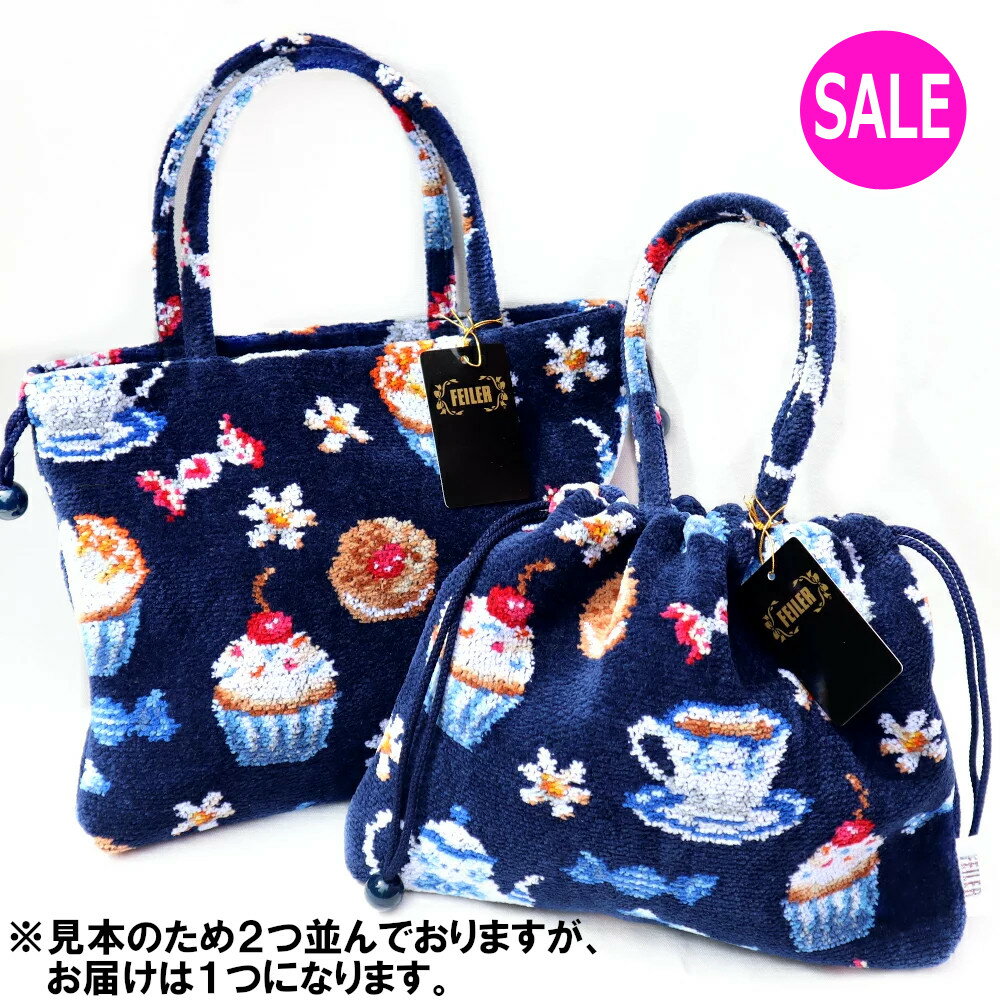 フェイラー ☆ 手付き巾着 【フェイラー正規品】 スウィートトリート (柄名) ネイビー SWEET TREAT SWT-222034 巾着バッグ