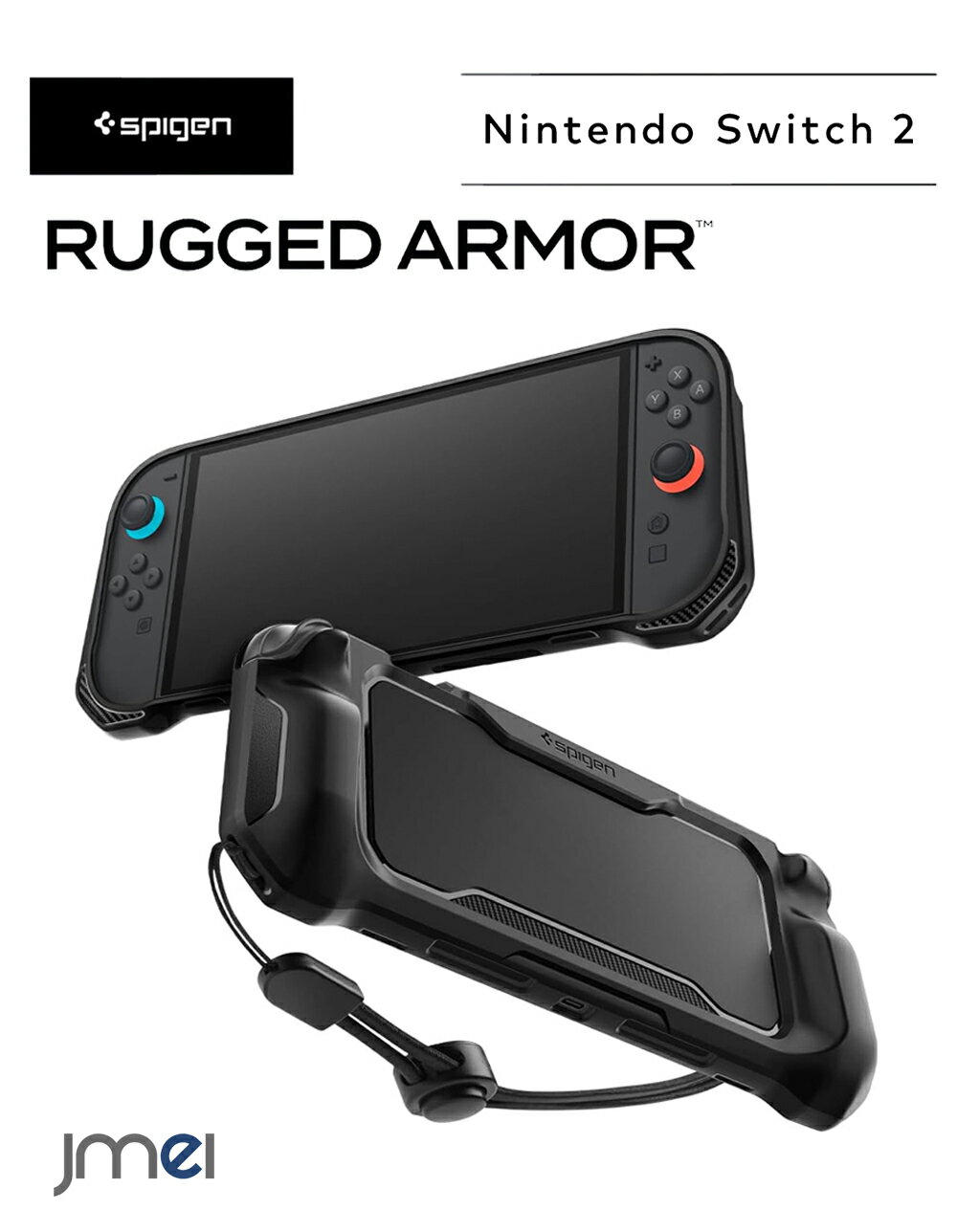 Spigen Switch2対応ケース グリップ強化 保護カバー 衝撃吸収 スイッチ2ケース ストラップ付き ラギッド・アーマー ACS09075(マットブラック)