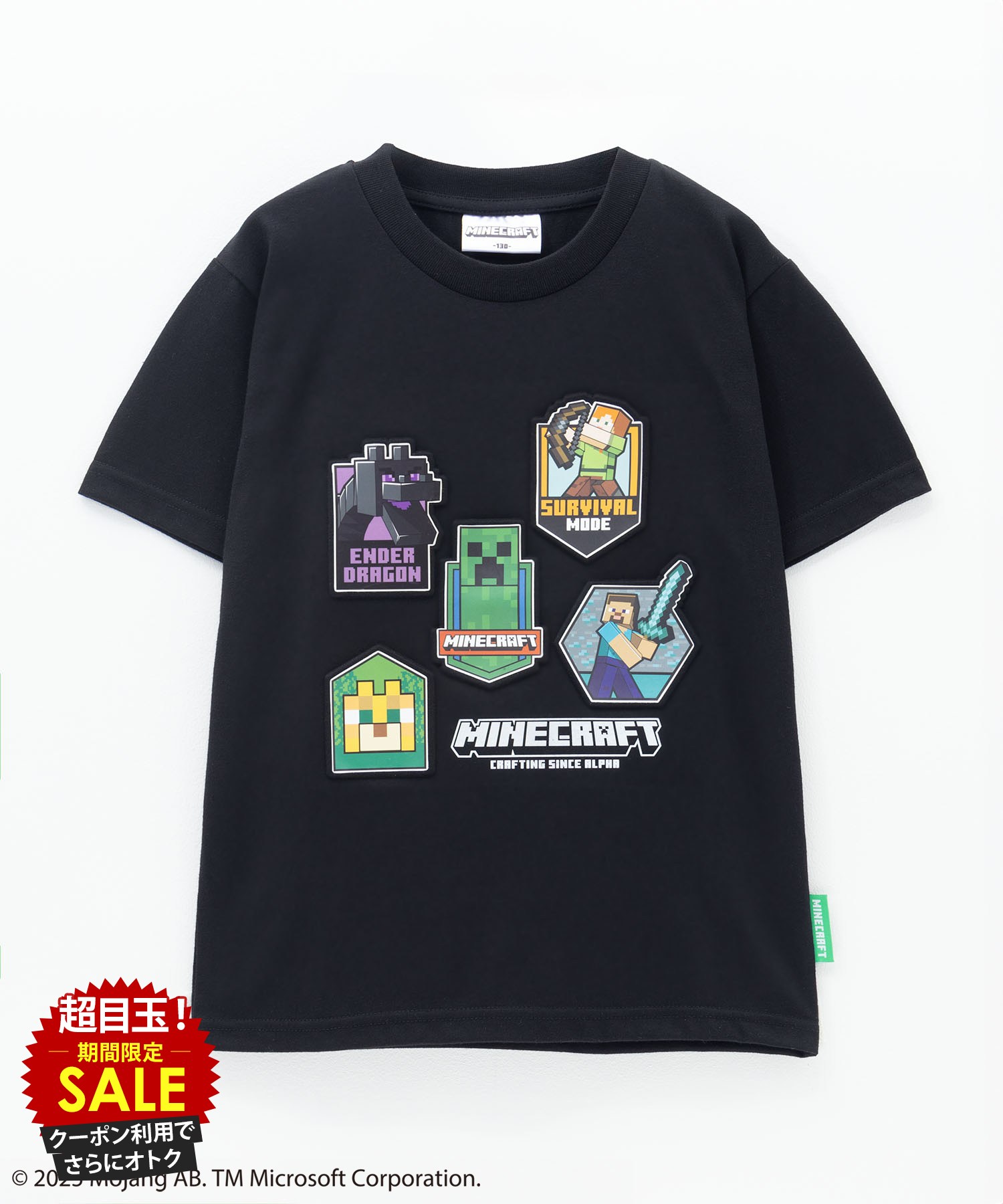 [特別価格★更に最大10%OFFクーポン]マインクラフト Minecraft Tシャツ 子供服 男の子 キッズ 半袖 ボーイズ トップス マイクラ キャラクター プリント 黒 クルーネック カットソー
