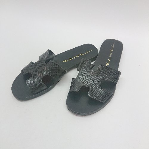 ◇ TABITA タビタ クロコダイル柄ストラップ ローヒール ぺたんこ おしゃれ サンダル サイズ35 ブラック レディース E 【中古】