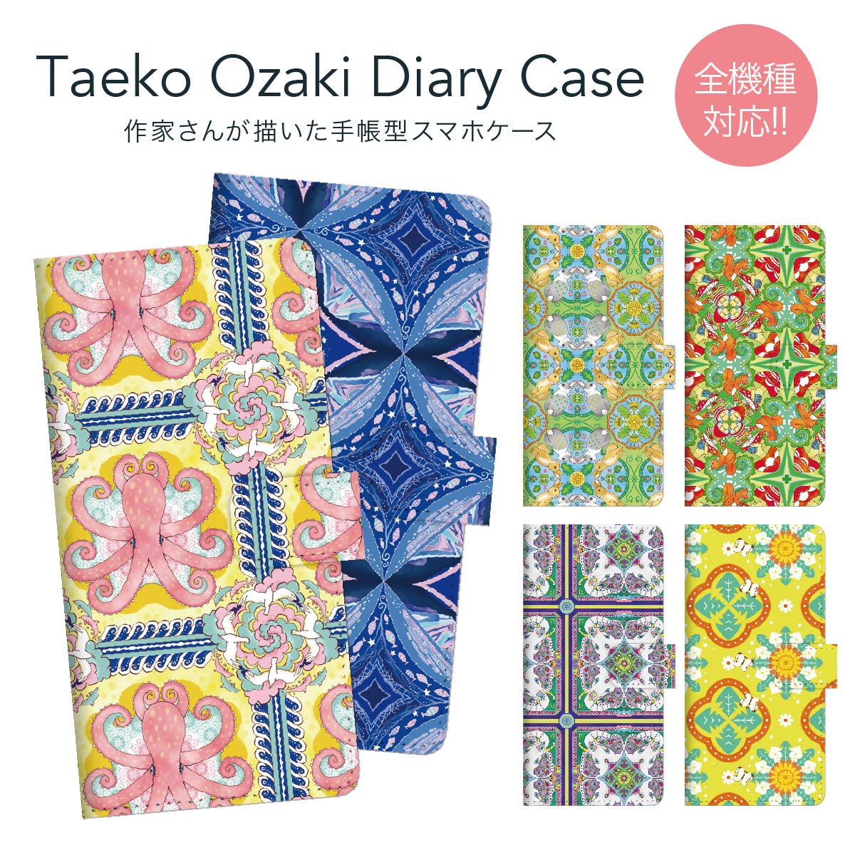 スマホケース 手帳型 全機種対応 手帳 ケース カバー iPhone 17 Pro Air ProMax 16 e 15 14 13 12 11 X XR XS 8 7 6 5 SE mini Plus AQUOS ARROWS Xperia Galaxy OPPO HUAWEI Google Pixel Taeko Ozaki 37-ip5-ds0002