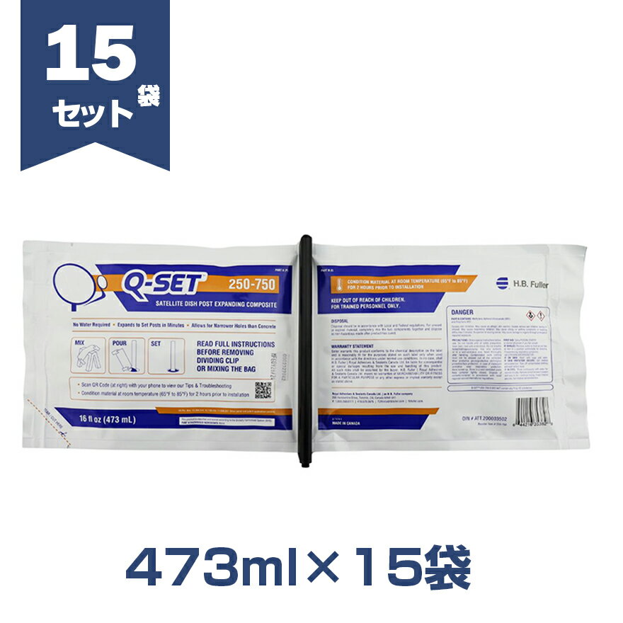 ウレタン支柱基礎材Q-SET 【基本説明】 ・作業労力の大幅削減。 Q-SETは、他に一切の資材を使いません。 これひとつで簡単に施工可能。 ・作業時間の短縮。 コンクリートに比べると、 「混合・注入・硬化」にかかる時間は 大幅削減。 ・優れた粘着性。 スチール製・亜鉛メッキ鋼製の支柱にも効果を発揮。 ・スチール製支柱の早期腐食リスクを軽減。Q-SETは電気絶縁体なので、早期腐食を防止。 ・高い疎水性。湿った土や、穴に少し残った溜まり水の影響は受けません。 【商品説明】 内容量:473ml/袋×15袋セット 【注意事項】 ・商品の案内をよく読んでからご使用下さい。 ・使用前に、はさみorカッター、保護用手袋、保護用めがねorゴーグルをご準備下さい。 ・使用前は、およそ20℃の室温下で最低1時間以上保管して下さい。保管した商品を混合後1分以内に袋を必ず開封して下さい。 ・本製品を用途以外には絶対に使用しないで下さい。 ※1袋:675mlから473mlに容量変更しております。(2024/5〜)