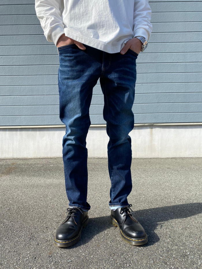 サイズ(cm) 29 30 31 32 33 34 36 38 ウエスト(平置き×2) 72 74 76 78 80 82 88 92 ヒップ(平置き×2) 100 104 108 110 112 116 122 126 総丈 112 112 113 113 113.5 113.5 114 114 股上 29 29.5 30 30.5 31 31.5 32 32.5 わたり 29.5 30 30.5 31 31.5 32 33 35 股下 84 84 84 85 85 85 85 85 裾幅 17 17.5 18 18.5 19 19.5 20.5 21.5 ご注意 ※商品によって1〜2cmの誤差がある場合がございます。※ヒップは商品のデザイン・シルエットによってサイズに誤差が出やすくなっております。あくまでも目安としてお考え下さい。※ご利用のモニター環境により色味が実物と異なって見える場合がございますので、予めご了承ください。 サイズの測り方はこちら>> おうちで着比べサービスはこちら>> 届いてスグ穿ける丈直しはこちら>> ラッピングはこちら>> 生地 厚さ 標準 硬さ 標準 伸縮性 なし スペック&素材 素材 綿100%レザーパッチ:鹿革 重量 約 950g(サイズ38) 生産国 日本製 裾ステッチ チェーンステッチ 洗濯表記 詳しくはこちら⇒ スタッフ試着コメント ●スタッフ(165cm/52kg) 体型:痩せ型着用:サイズ29 サイズ29で丁度のサイズ感です。ウエストは多少ゆとりがありますが、ベルトを必要とする程ではありませんでした。ヒップ腿周りに少しゆとりがあって楽な穿き心地です。 ●スタッフ(171cm/61kg) 体型:普通着用:サイズ32 ウエストはジャストなフィット感です。ヒップ腿周りは、程良くゆとりがありました。裾は1ロールできるほど余るので、ロールアップが苦手な方は裾直しをおすすめします。 ●スタッフ(177cm/67kg) 体型:普通着用:サイズ34 着丈は、着用モデルと同じサイズ感で穿いていただけます。ウエスト・ヒップ腿周りは程よくゆとりがあり、快適な穿き心地です。 ●スタッフ(181cm/80kg) 体型:ガッチリ着用:サイズ36 ヒップ・腿周りにゆとりがあり窮屈感もなく、ウエストも違和感なくサイズ36で丁度良い感じでした。ワンウォッシュしてあるので適度に柔らかく穿きやすいです。 ※ メーカー希望小売価格はメーカー商品タグに基づいて掲載しています。シルエットにこだわった定番デニム F.O.B FACTORYで人気の高いスーピマコットンを使用した14.75オンスのセルヴィッチデニム。 今回は、ヨーロッパのFOBユーザーからのリクエストを形にしました。股上は少し深めに、腿周りに少しゆとりを持たせつつ、裾巾は細くするなど、パターンメイクに注力し、美しいテーパードラインが魅力の一本に仕上げられています。 さらに、極限まで糸本数を増やすことでタフでありながら、しなやかさも併せ持ち、穿く人の体に馴染むデニムです。また、繰り返しロープ染色を行うことで、抜群にメリハリの効いた色落ちをお楽しみいただけます。 FOB FACTORY(F.O.Bファクトリー) 古着にインスパイアした、ワーク、ミリタリー、ジーンズをベースに日本の中でも有数の生産基地、岡山県倉敷市児島に本社を構え、全工程を日本でおこなうブランド。購入して頂いた方が、3年後に買って良かったと思える服作りを目指しています。 FOB FACTORY 一覧はこちら >> 武骨さ溢れる男らしい丈夫な生地 生地には14.75ozのF.O.B FACTORYオリジナルのスーピマコットン100%のセルビッチデニムを採用。極限まで糸本数を増やすことで非常にタフな素材ながら、穿く人の体に馴染むしなやかさが特徴です。 穿き込む程に自分の身体にフィットしてくれるので、長く着用していただけます。 経年変化で自分だけの逸品へ 「誰がどのように着てもヴィンテージのような良い色落ちをするデニム」で、マニアも唸るほどの抜群の色落ちを楽しむことができます。 ロープ染色と呼ばれる主にデニム生地を染める方法で、糸の芯まで染まりきらず、芯白の糸に仕上がります。つまり糸の外側だけがブルーに染まり、芯は白いままなのです。これにより、穿き込むほどに色落ちし、デニムならではの味わい深い表情をお楽しみいただけます。 ヴィンテージマニアも納得のディテール フロントはボタンフライ仕様。オリジナルで制作した鉄製のブランド刻印入りのトップボタンと小タックボタンを採用しています。 一般的な真鍮製やニッケル製のボタンではなく、鉄素材が持つ存在感のある経年変化は、鉄特有の「錆びる」というネガティブな現象が、同時に非常に味のある表情を見せてくれます。 また、後ろポケットの隠しリベットにも注目◎。この仕様は、リーバイスが1930年〜60年代頃まで採用していたと言われる、現行には無いヴィンテージならではのディテールです。 当時、それまで剥き出しでポケットに施されていたリベットが馬具の鞍や家具を傷つけてしまうことから、リベットを外側に出さない「隠しリベット」が発案されたと言われています。 さらに、ウエストに配されたレザーパッチはヴィンテージデニムに使用されている鹿革を採用。デザインには「このデニムが作り手と穿くお客様との懸け橋になる」と言うブランドの想いが込められています。 お客様の声に答えた、こだわりのシルエット ヨーロッパのFOBユーザーからのリクエストを元に新たにパター