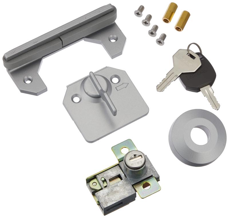 ヨドコウ ヨド蔵MD 2連片引き扉用 錠セット物置本体発売期間:2004年4月~現在まで子カギ2本付属。取付用ナット・ビス付属。子カギのみの取り寄せは出来ません。ガラス入りのドア及びガラス入り引き戸にはお使いいただけません。機種詳細・交換手順はページ左上の添付画像をご覧ください。鍵番号の指定は出来ません。